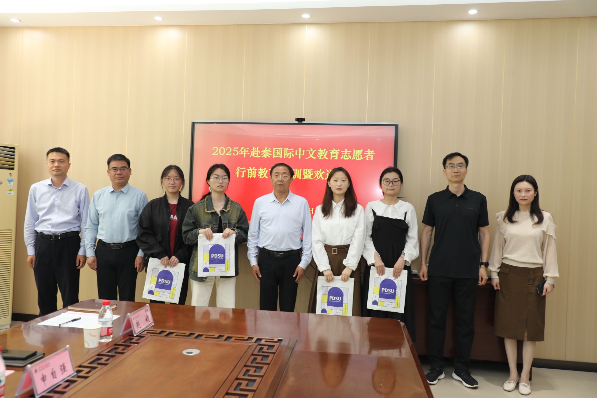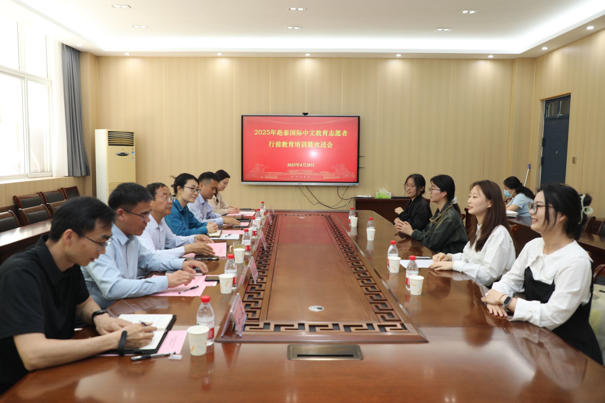 4月28日上午,我校举行2025年赴泰国际中文教育志愿者行前教育暨欢送会。副校长于长立、平顶山市国家安全局、威尼斯电子游戏大厅、外国语学院等相关单位负责人以及我校4名赴泰国际中文教育志愿者参加。会议由国际交流与合作中心主任王雁冰主持。