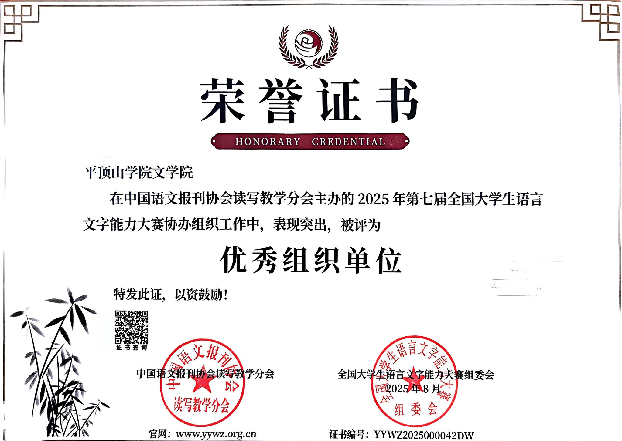 威尼斯电子游戏大厅——2025年第七届全国大学生语言文字能力大赛优秀组织单位
